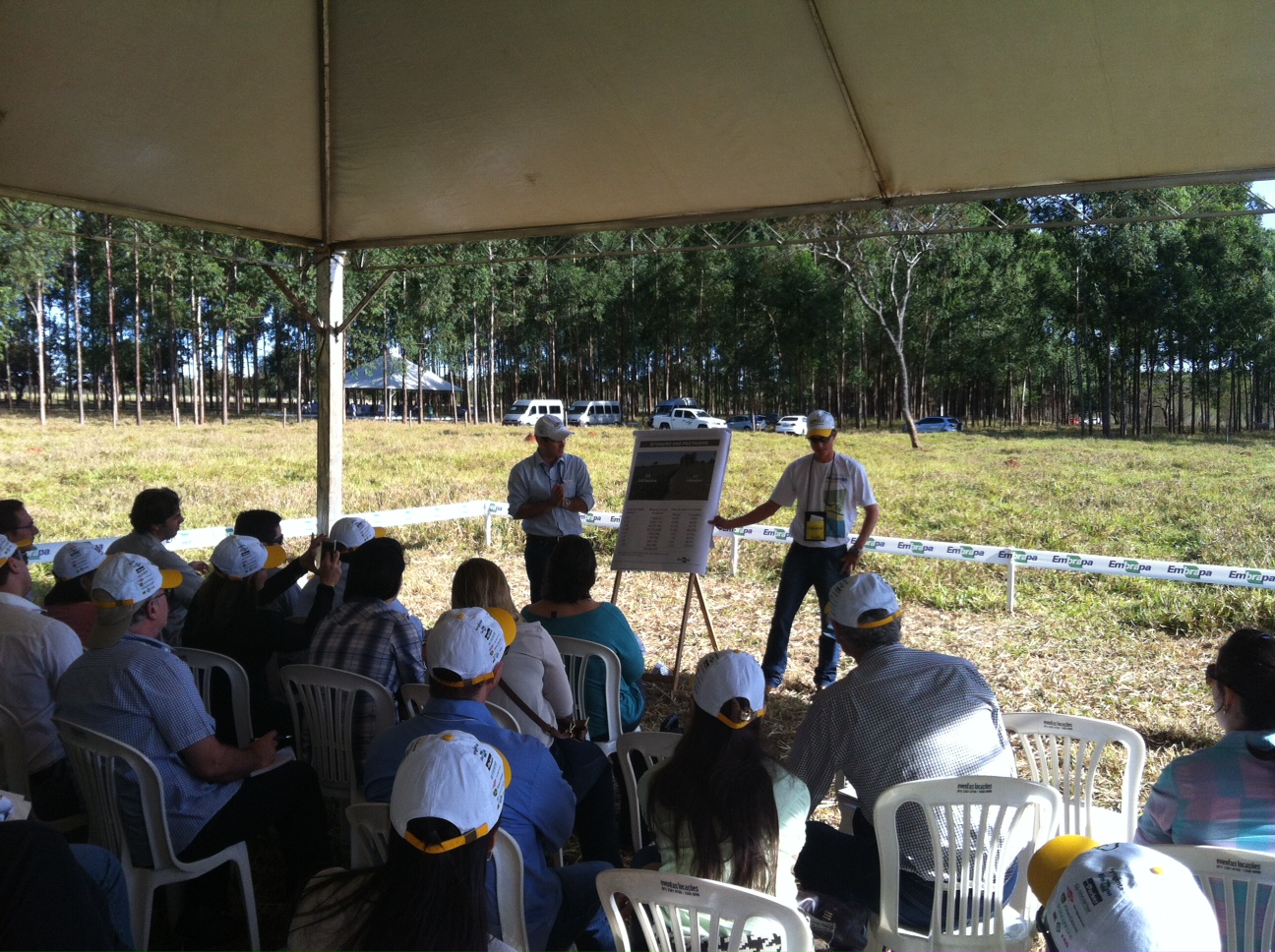 E dentro do evento ainda ocorreu um dia de campo. No caso de uma empresa de pesquisa agropecuária isso significa um dia em que as descobertas e experimentos sobre determinado assunto são apresentadas, geralmente no local onde os experimentos são feitos. O que no nosso caso significa, no campo. E dessa vez eu não estava aplicando nada, apenas assistindo e ajudando.