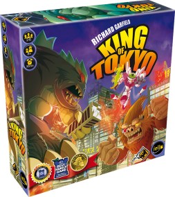 King of Tokyo (O Rei de Tóquio) é um jogo de tabuleiro que explora essa famosa fascinação japonesa por monstros gigantes destruindo sua capital. O foco é na diversão e não o terror. Os jogadores competem entre si para descobrir que monstro destruirá a cidade japonesa tornando-se o Rei de Tóquio (e vencedor do jogo). Os monstros são variados, com uma certa puxada para o cômico, como a cara de enfado do Alienoid ou os absurdo monstros da expansão de Halloween. Existe uma tabela simples e funcional para controlar os pontos de vida e de vitória de cada monstro,o que dispensa a existência de um placar geral e uma série de cartas de poderes que tornam os monstros mais personalizáveis, aumentando a rejogabilidade. A solução do problema encarado nessa história também é um tributo à robustez do sistema de jogo. Se o jogo não t fosse tão bem projetado a solução seria muito mais difícil.