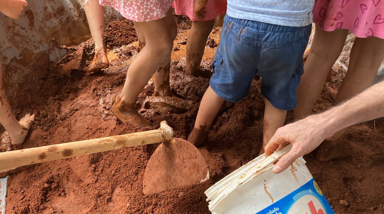 Ao longo do ano de 2021, a escola do infante trabalhou com o tema profissões. A turma visitou diferentes profissionais para conhecer profissões básicas, aquelas que fazem coisas essenciais, como plantar, fazer comida, construir, cozinhar etc. Seguindo esse tema os alunos tiveram atividades variadas como: preparar a terra, plantar, grãos para fazer farinha, construir uma casinha (de verdade) e costurar um boneco. Creio que um do motivo da escolha por essas profissões é por terem resultados mais tangíveis e observáveis pelos alunos. Afinal, explicar utilidade daquele relatório ou planilha para uma criança seria algo muito mais obscuro (e tedioso).